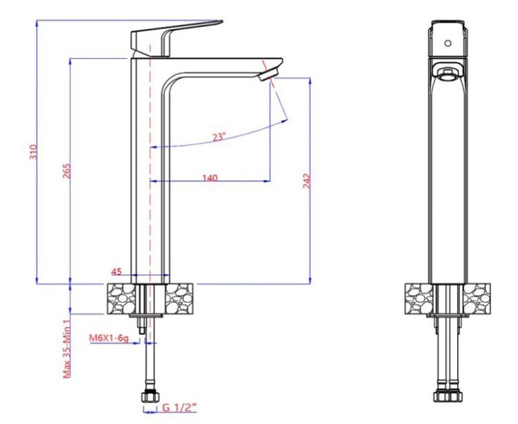 Высота смесителя:31