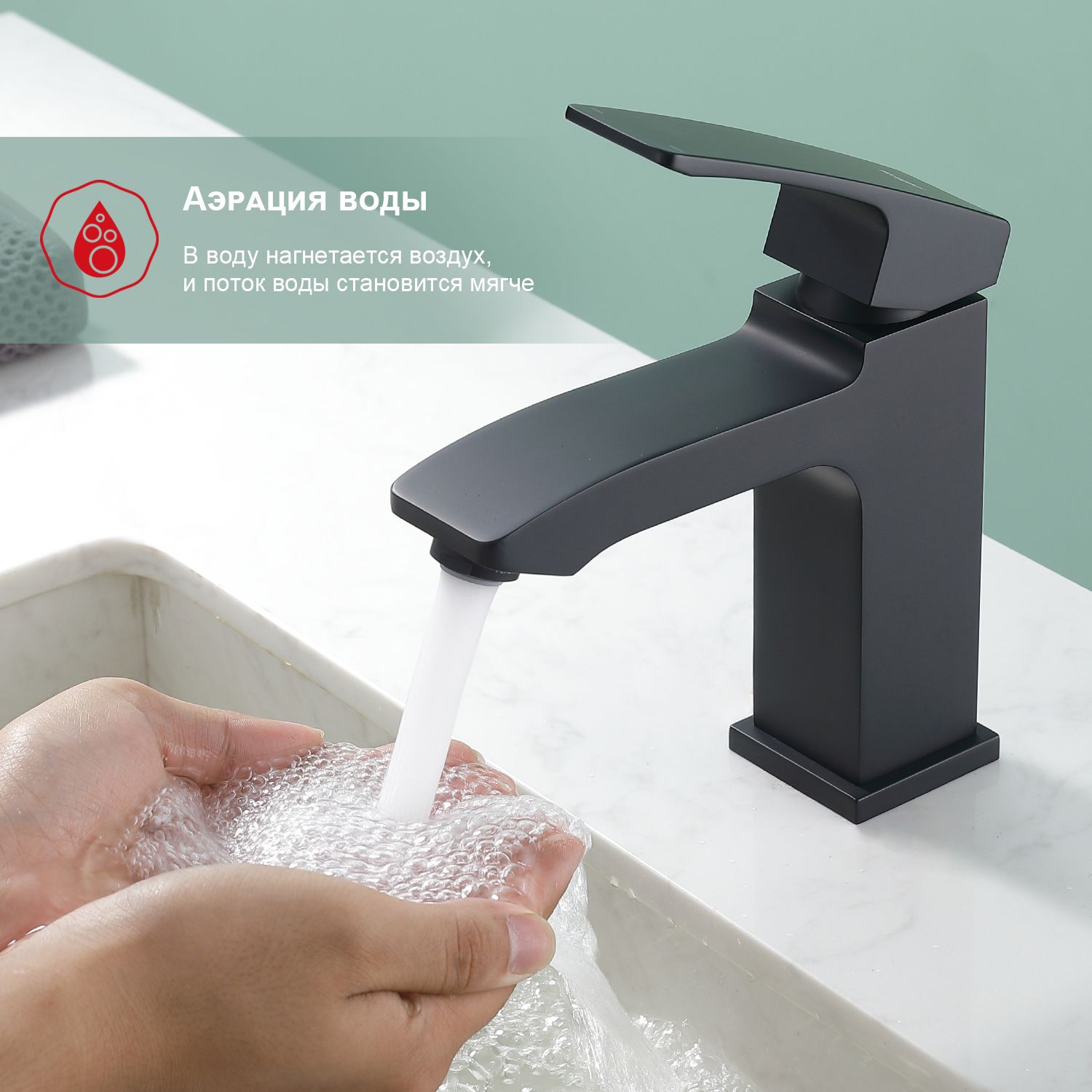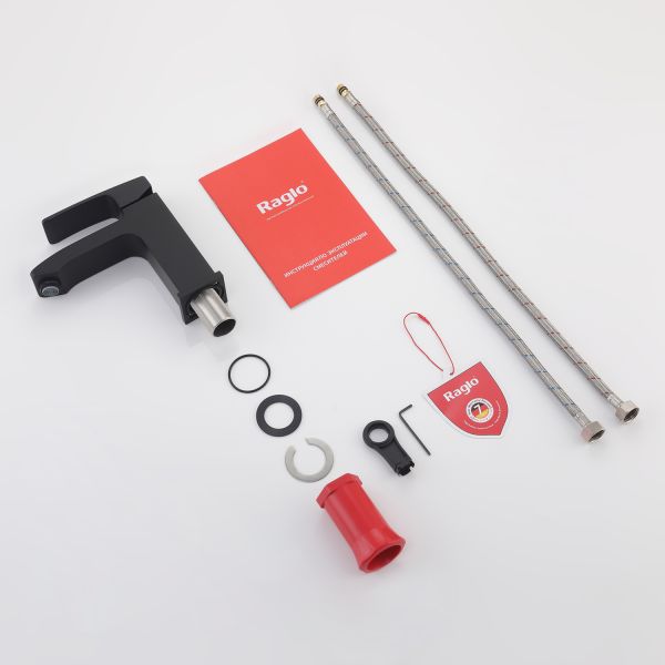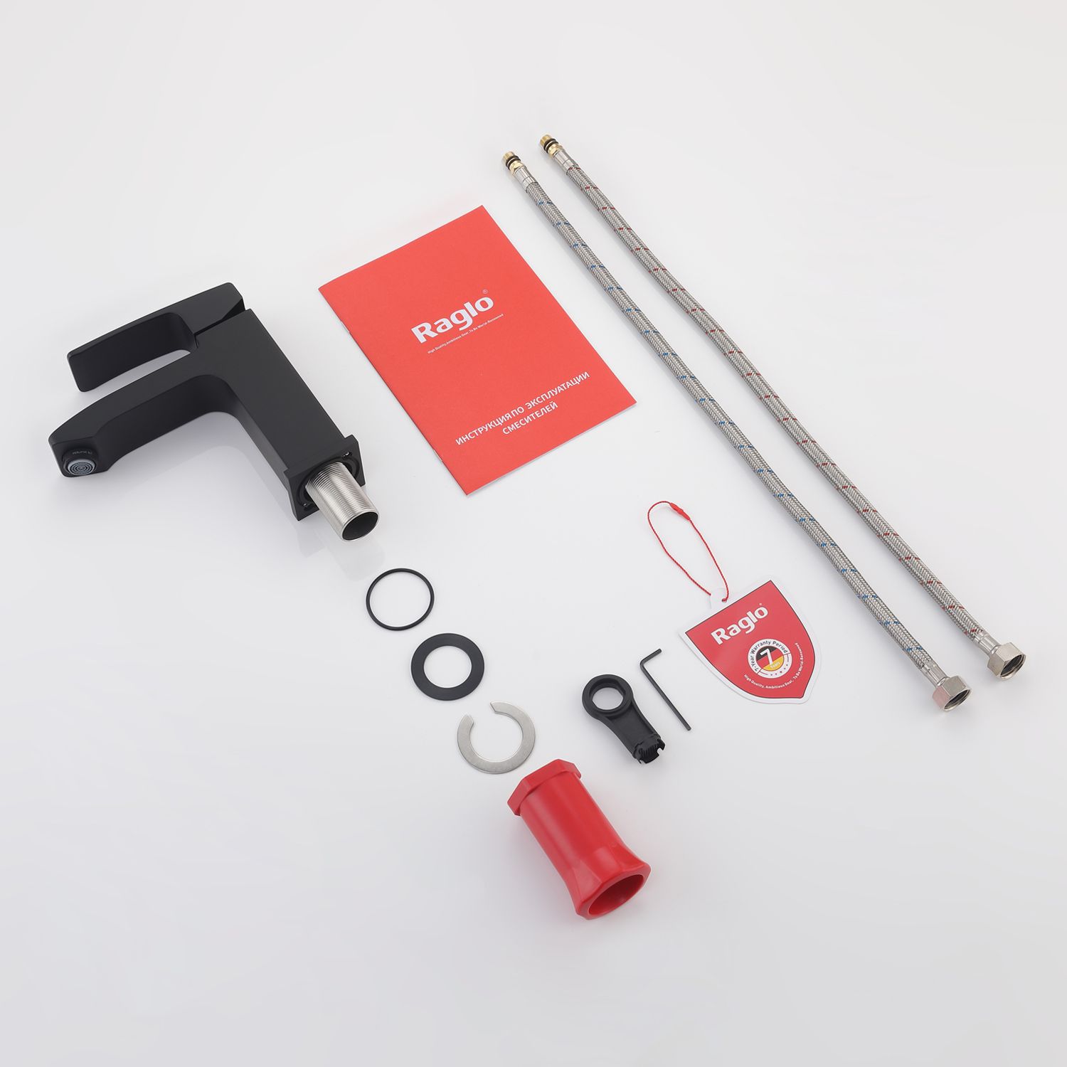Смеситель для раковины Raglo R01.10.06, черный. Смеситель для раковины RAGLО имеет повышенную прочность корпуса. Соответствует требованиям международного стандарта. Аэратор гарантирует одинаковый поток воды, сеточка рассеивает напор, вода смягчается. Смеситель устанавливается на гайке, нижняя часть смесителя вставляется в отверстие для монтажа и затягивается гайкой для фиксации. Данный смеситель для умывальника имеет надежный стационарный излив, не меняющий своего положении. Смеситель прекрасно смешивает потоки воды, а помимо этого обладает невысоки показателем шумов. Быстрый монтаж.Гарантия производителя 7 лет.