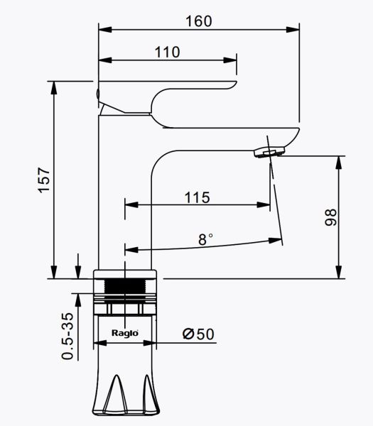 Смеситель для раковины RAGLО имеет повышенную прочность корпуса. Соответствует требованиям международного стандарта. Одна рукоять для регулировки воды. Аэратор гарантирует одинаковый поток воды, сеточка рассеивает напор, вода смягчается. Смеситель устанавливается на гайке, нижняя часть смесителя вставляется в отверстие для монтажа и затягивается гайкой для фиксации. Данный смеситель для умывальника имеет надежный стационарный излив, не меняющий своего положении. Смеситель прекрасно смешивает потоки воды, а помимо этого обладает невысоки показателем шумов. Быстрый монтаж.Гарантия производителя 7 лет.