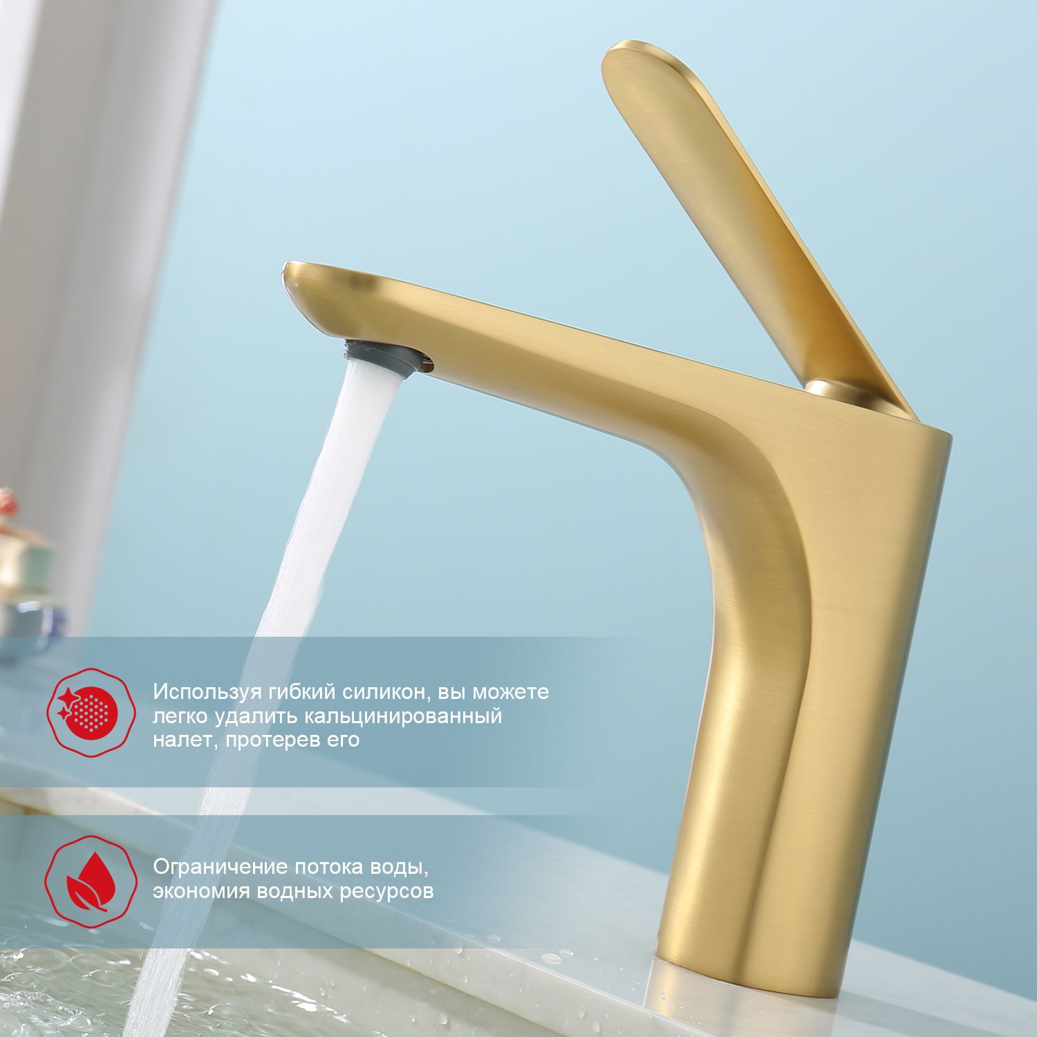 Смеситель для раковины Raglo R21.10.03 золотой сатин