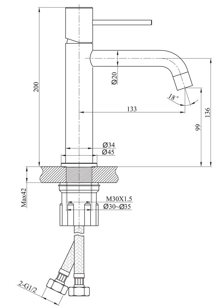 • Высота смесителя: