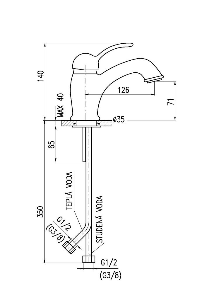 • Высота смесителя: