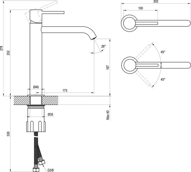 • Высота смесителя: