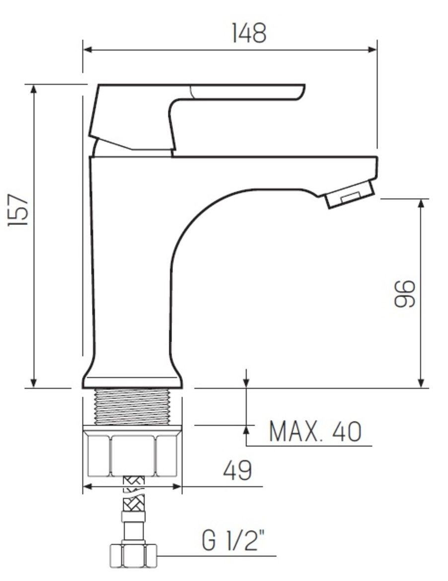 • Высота смесителя: