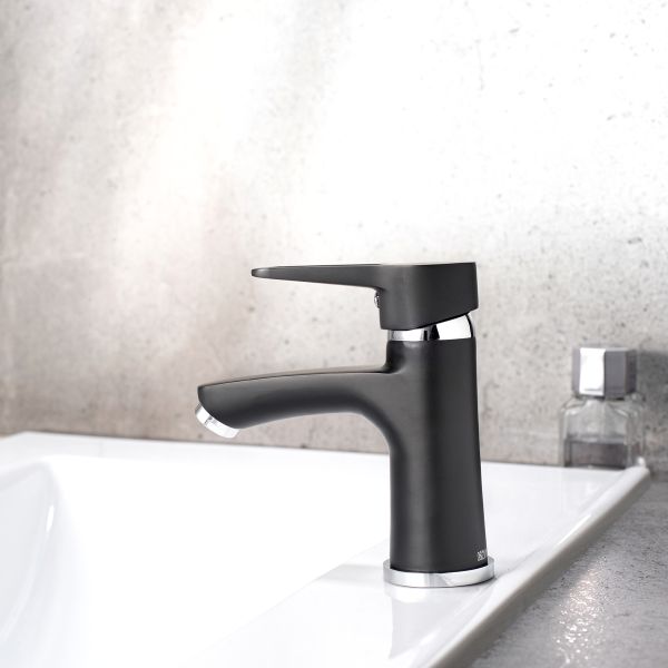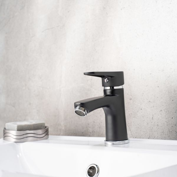 Изящный однорычажный смеситель для умывальника выполнен в модном черном оттенке и станет стильным украшением вашего интерьера.