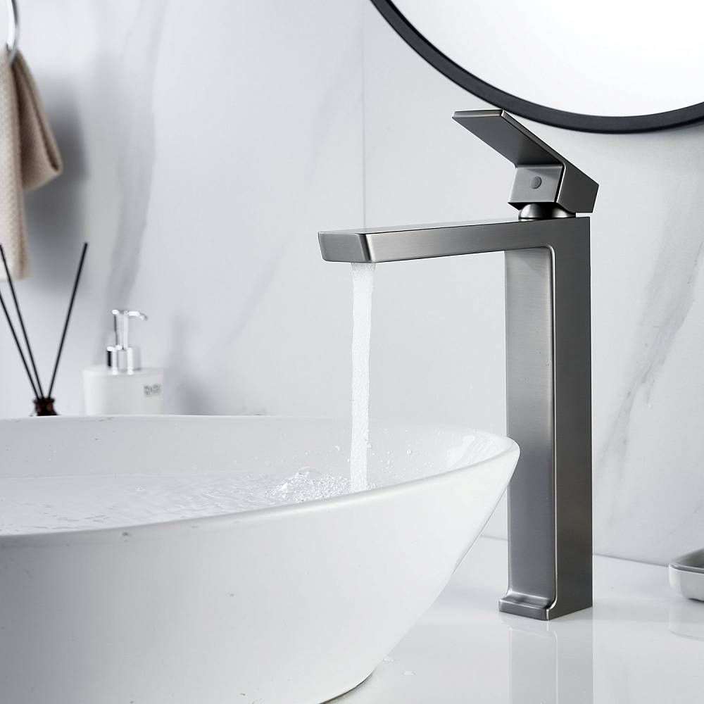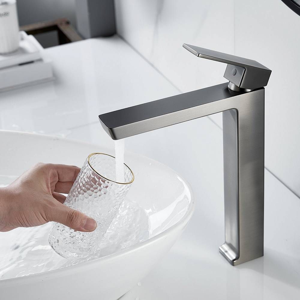 Смеситель для раковины высокий Rose R18T R1811T-1, оружейная сталь.Материал: латунь.Управление: рычажное.Стилистика дизайна: Современный стиль.Подводка: гибкая, 1/2" .