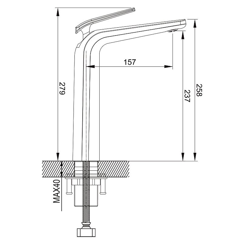 • Высота смесителя:
