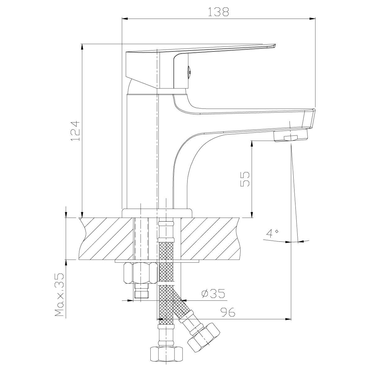 Смеситель для умывальника и биде монолитный S35-15. Пластиковый аэратор с функцией легкой очистки. Керамический картридж 35 мм. Аксессуары в комплекте (шланг 1,5 м, лейка для биде с нажимным механизмом, настенное крепление для лейки).