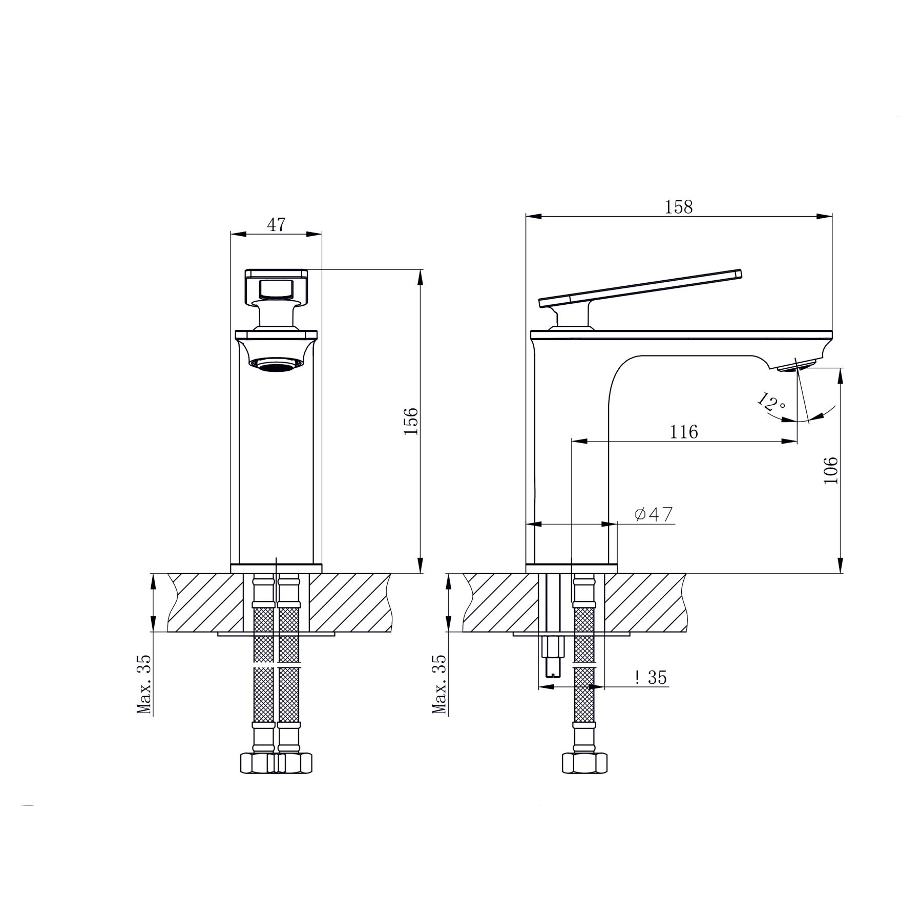 • Высота смесителя: