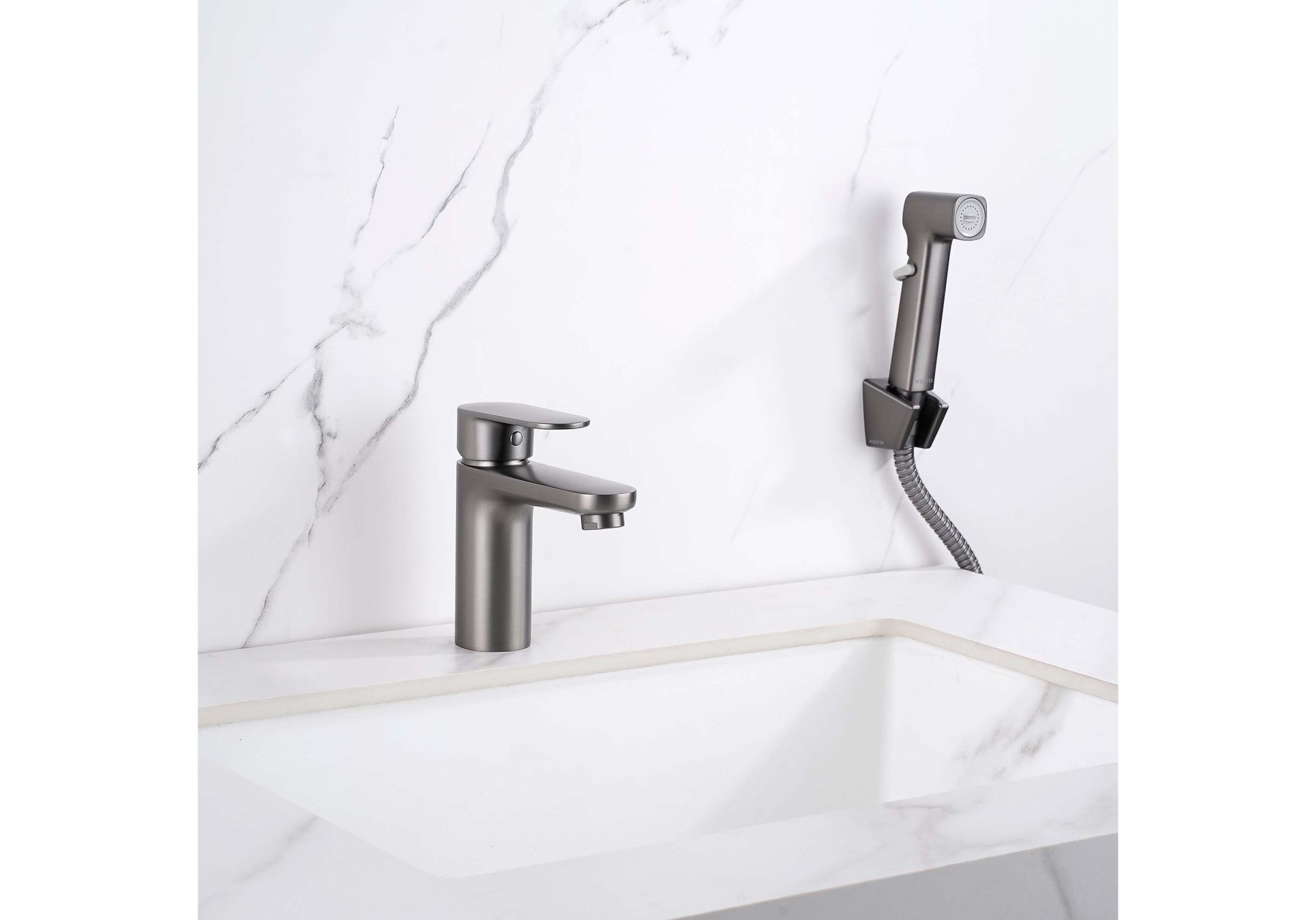 Смеситель для раковины с гигиеническим душем Aquatek Ника AQ1812BGM оружейная стальСмеситель