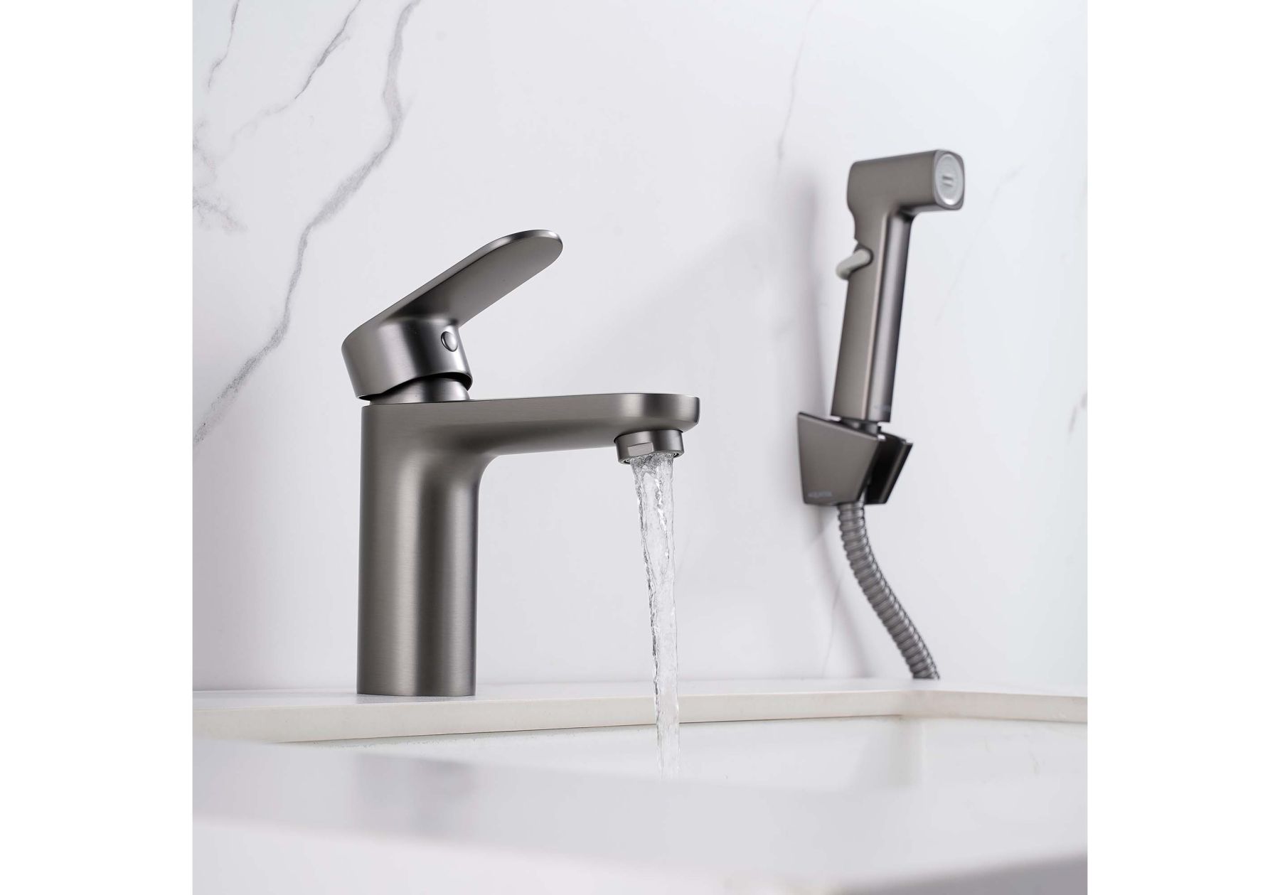 Смеситель для раковины с гигиеническим душем Aquatek Ника AQ1812BGM оружейная сталь купить