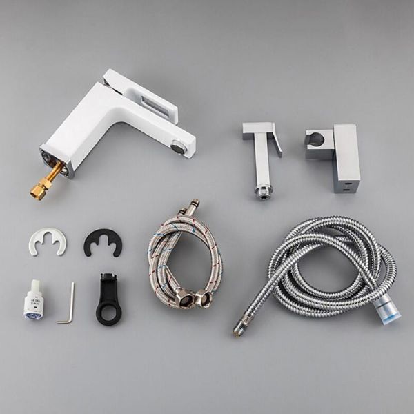 Смеситель для раковины с гигиеническим душем Gappo G1017-1 белый/хром купить