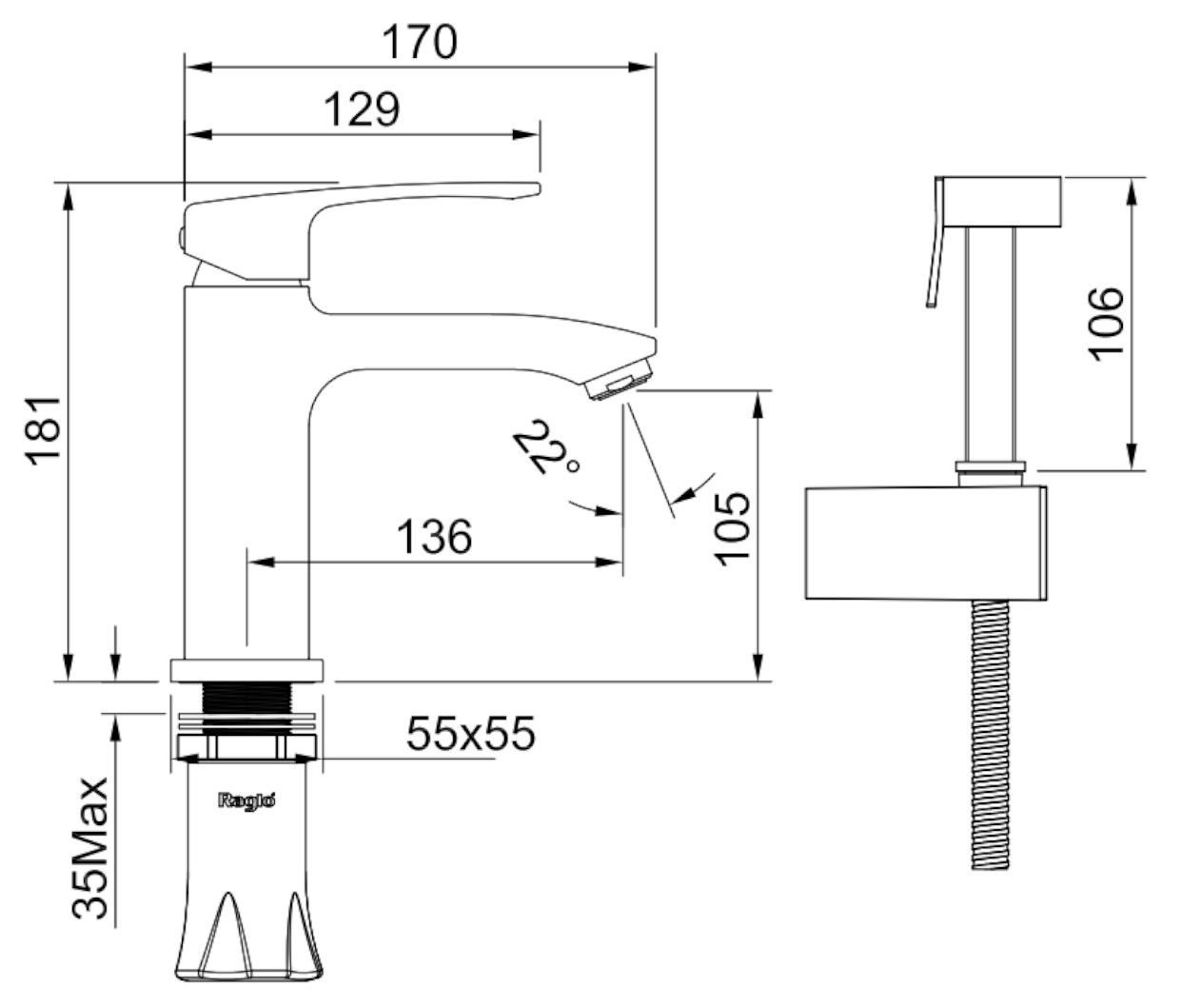 Смеситель для раковины с гигиеническим душем Raglo R01.12 хром