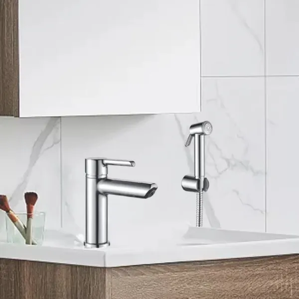 Смеситель для раковины с гигиеническим душем Shevanik S6071 хром