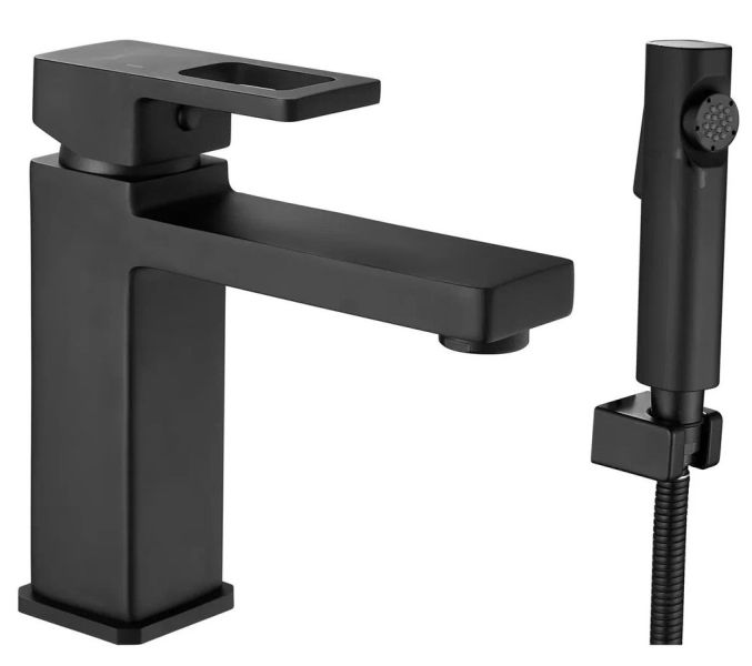 Смеситель для раковины с гигиеническим душем Shevanik S8271H чёрный купить
