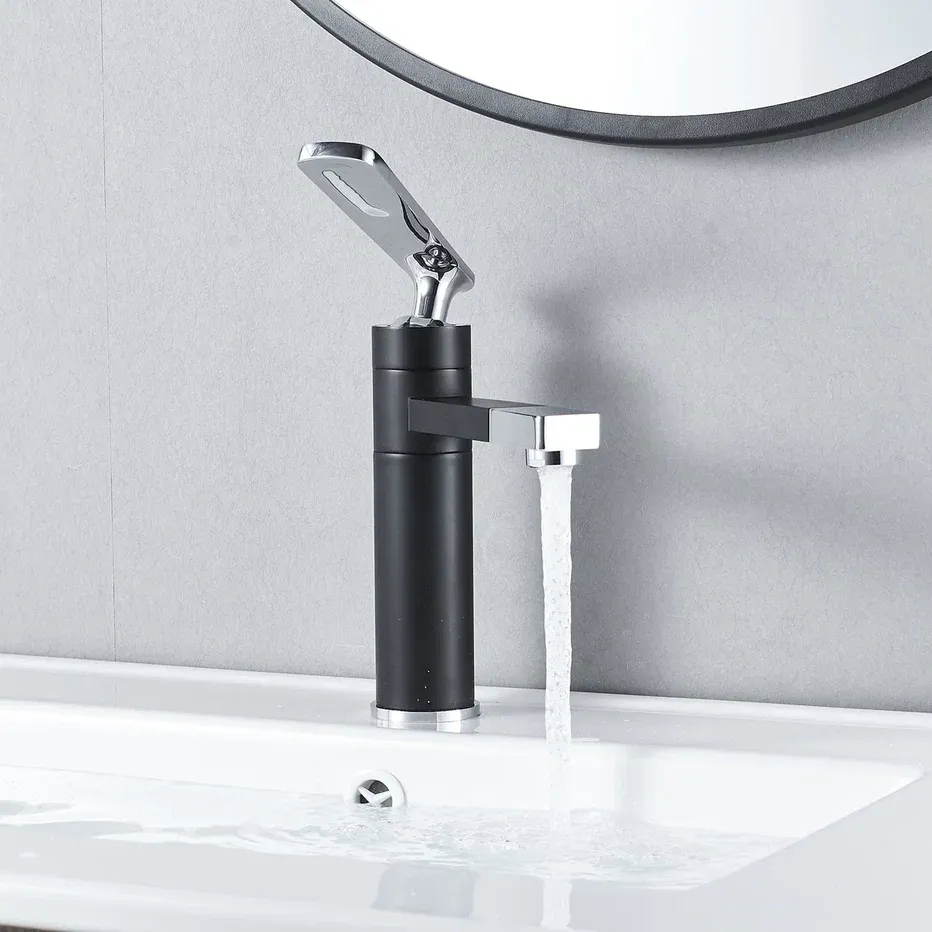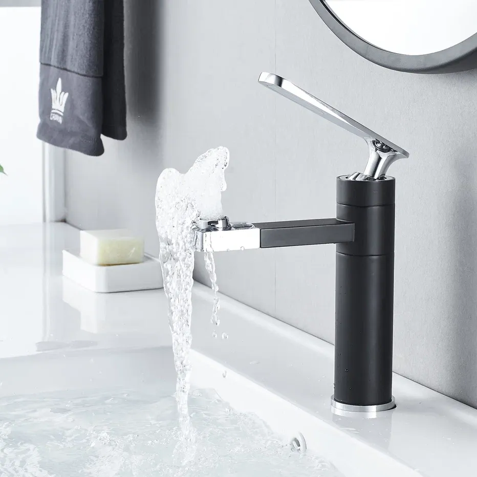 Смеситель для раковины Shevanik S6601H с поворотным носиком чёрный/хром