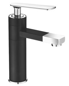 Смеситель для раковины Shevanik S6601H с поворотным носиком чёрный/хром купить