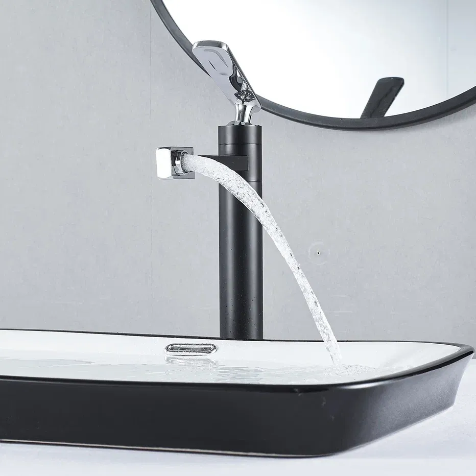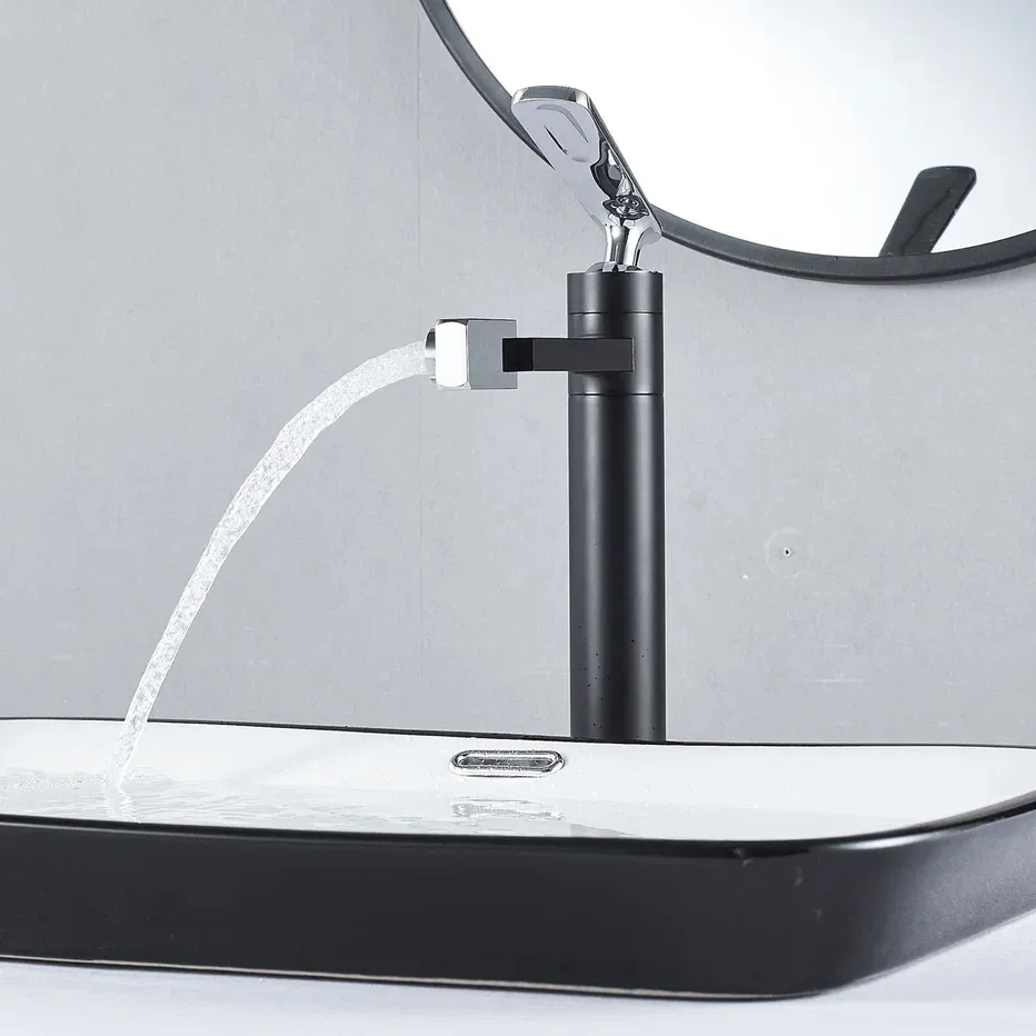 Смеситель для раковины Shevanik S6611H с поворотным носиком чёрный/хром купить