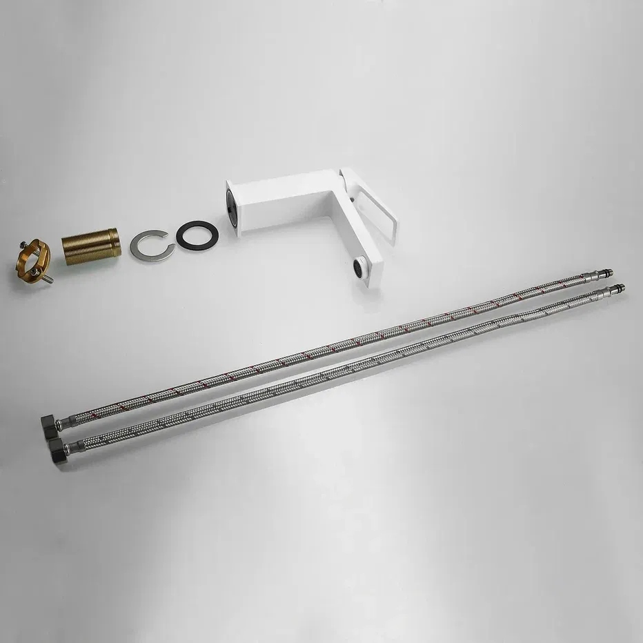 Смеситель для раковины Shevanik S6801С, белый.Стилистика дизайна: Современный cтиль.Монтаж: на раковину.Излив: традиционный, фиксированный.Подводка: гибкая, 1/2" .Материал: латунь.