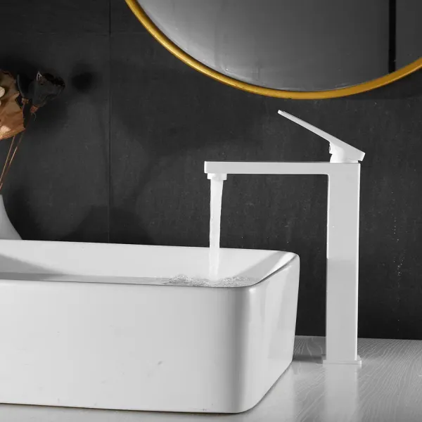 Смеситель для раковины Shevanik S6811С, белый.Стилистика дизайна: Современный cтиль.Монтаж: на столешницу.Излив: традиционный, фиксированный.Подводка: гибкая, 1/2" .Материал: латунь.