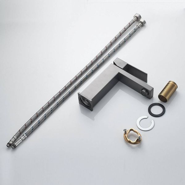 Смеситель для раковины Shevanik S7001T, оружейная сталь.Стилистика дизайна: Современный cтиль.Монтаж: на раковину.Излив: традиционный, фиксированный.Подводка: гибкая, 1/2" .Материал: нержавеющая сталь.