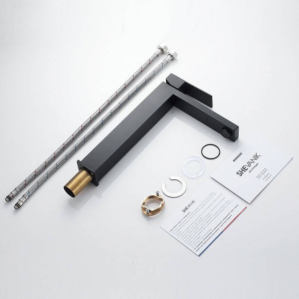 Смеситель для раковины Shevanik S7011H, черный.Стилистика дизайна: Современный cтиль.Монтаж: на столешницу.Излив: традиционный, фиксированный.Подводка: гибкая, 1/2" .Материал: нержавеющая сталь.