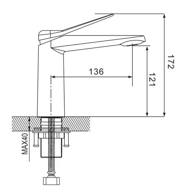 • Высота смесителя:
