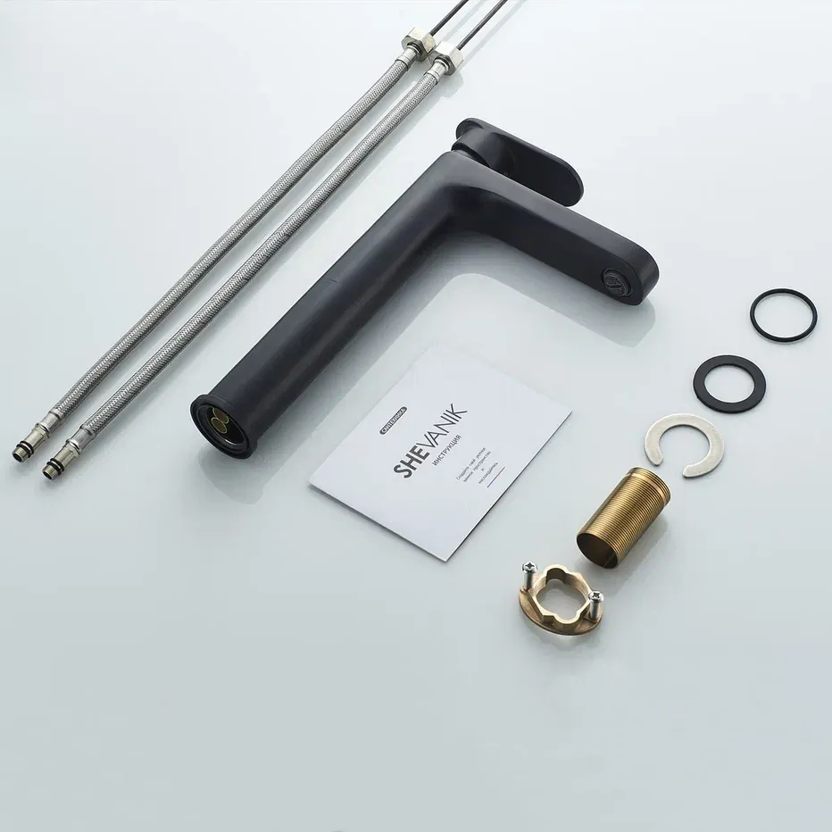 Смеситель для раковины Shevanik S8711H, черный.Стилистика дизайна: Современный cтиль.Монтаж: на столешницу.Излив: традиционный, фиксированный.Подводка: гибкая, 1/2" .Материал: латунь.