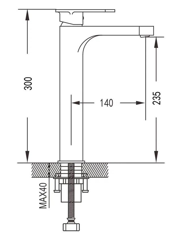 • Высота смесителя: