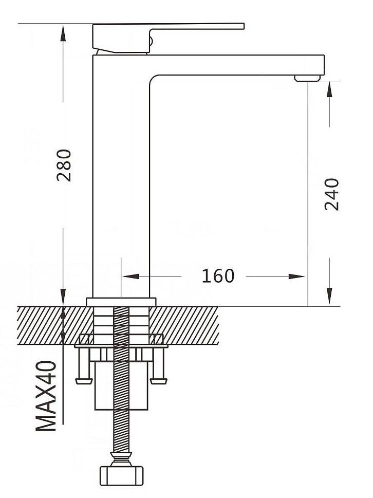 • Высота смесителя: