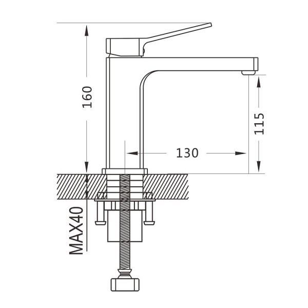 • Высота смесителя: