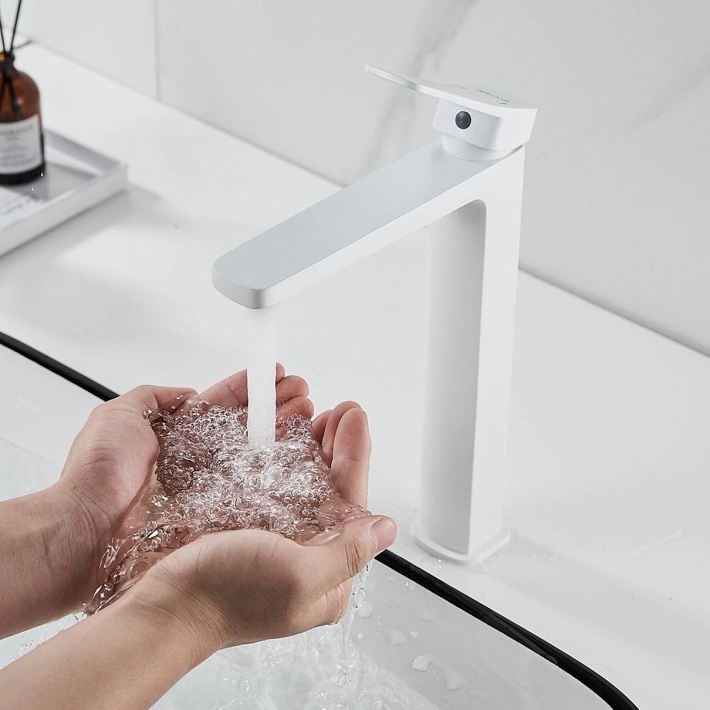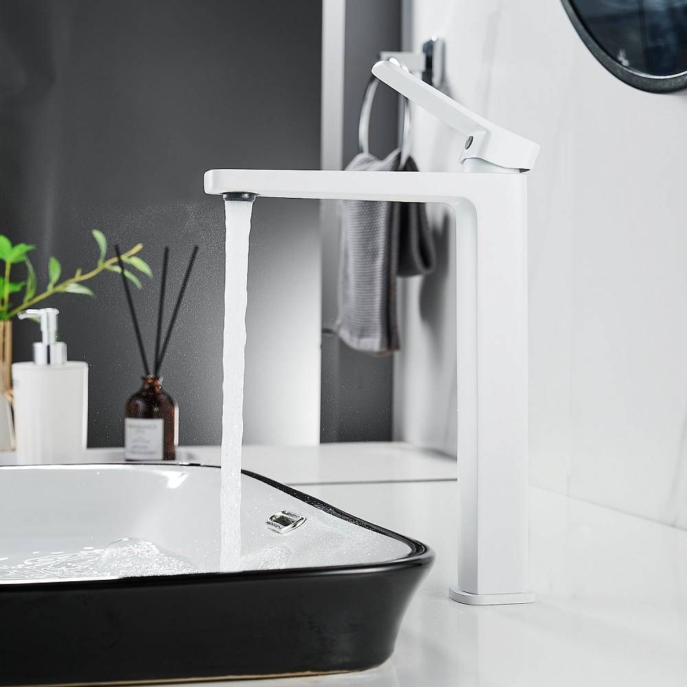 Смеситель для раковины Shevanik S9911C, белый.Стилистика дизайна: Современный cтиль.Монтаж: на столешницу.Излив: традиционный, фиксированный.Подводка: гибкая, 1/2" .Материал: латунь.