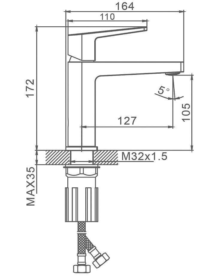 • Высота смесителя: