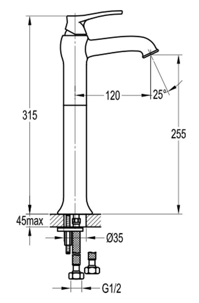 • Высота смесителя: