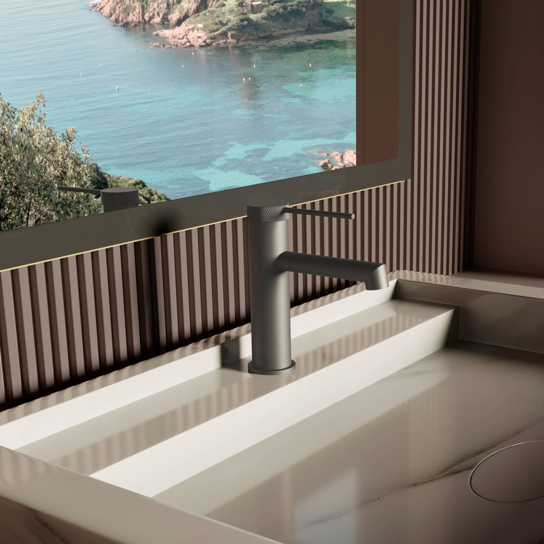 Смеситель для раковины Vincea Rim VBF-2RM1GM, вороненая сталь