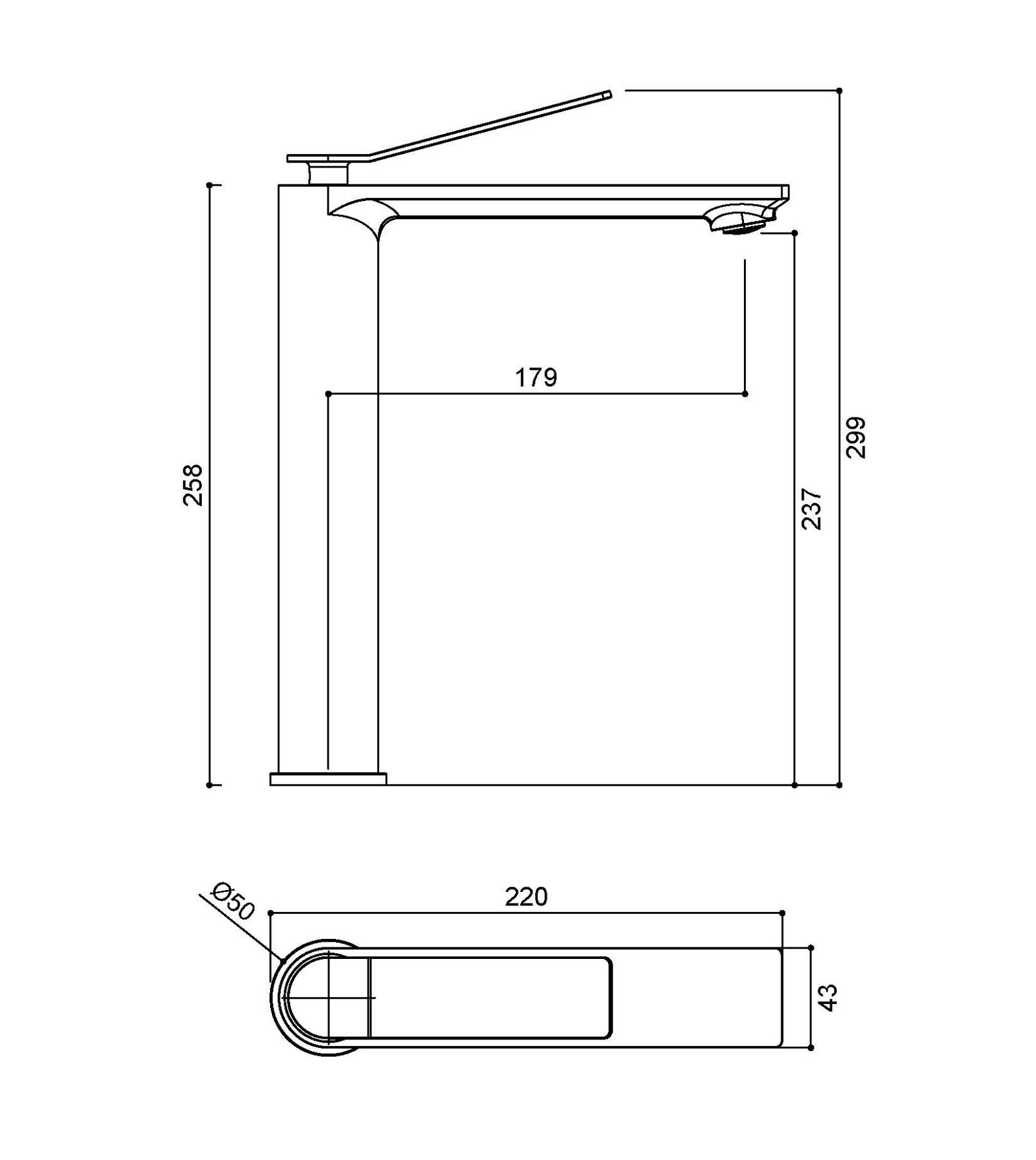 • Высота смесителя: