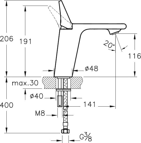 • Высота смесителя: