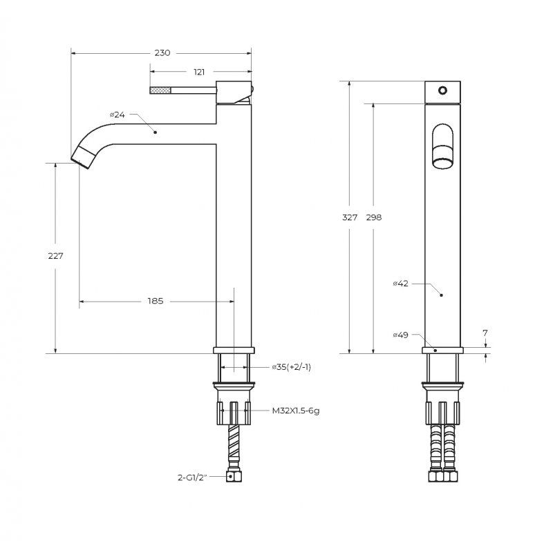 • Высота смесителя: