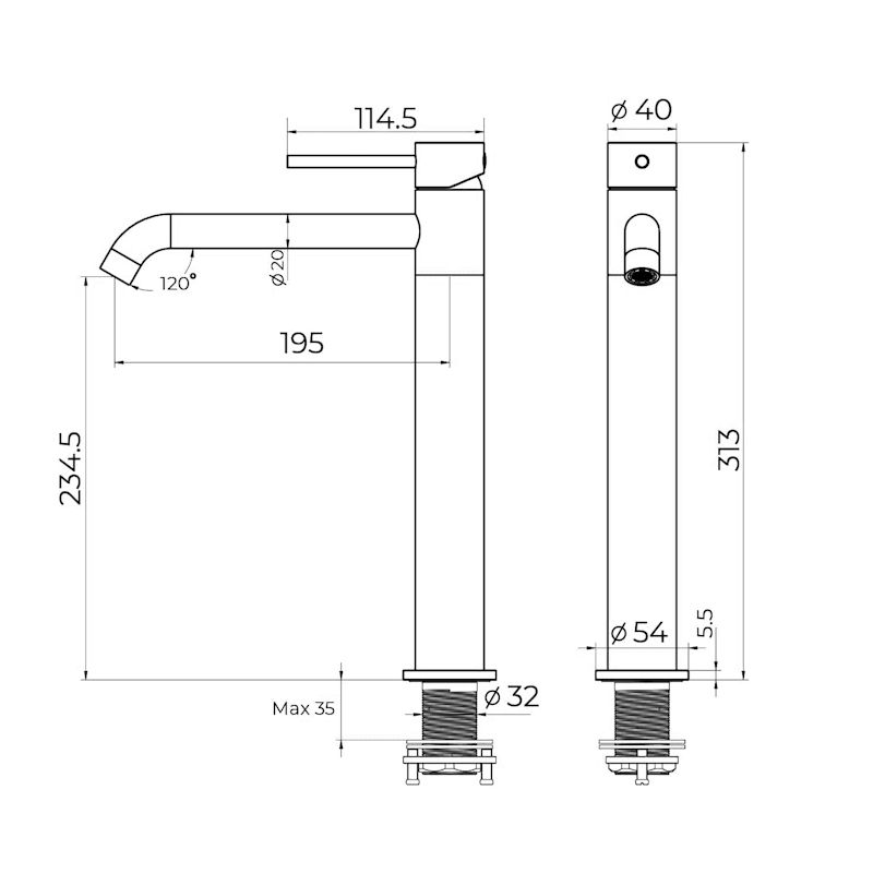 • Высота смесителя: