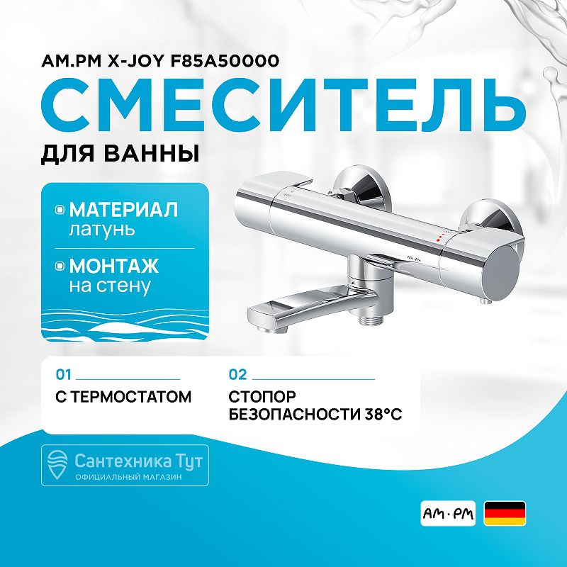 Смеситель для ванны AM.PM X-Joy F85A50000 с термостатом Хром купить