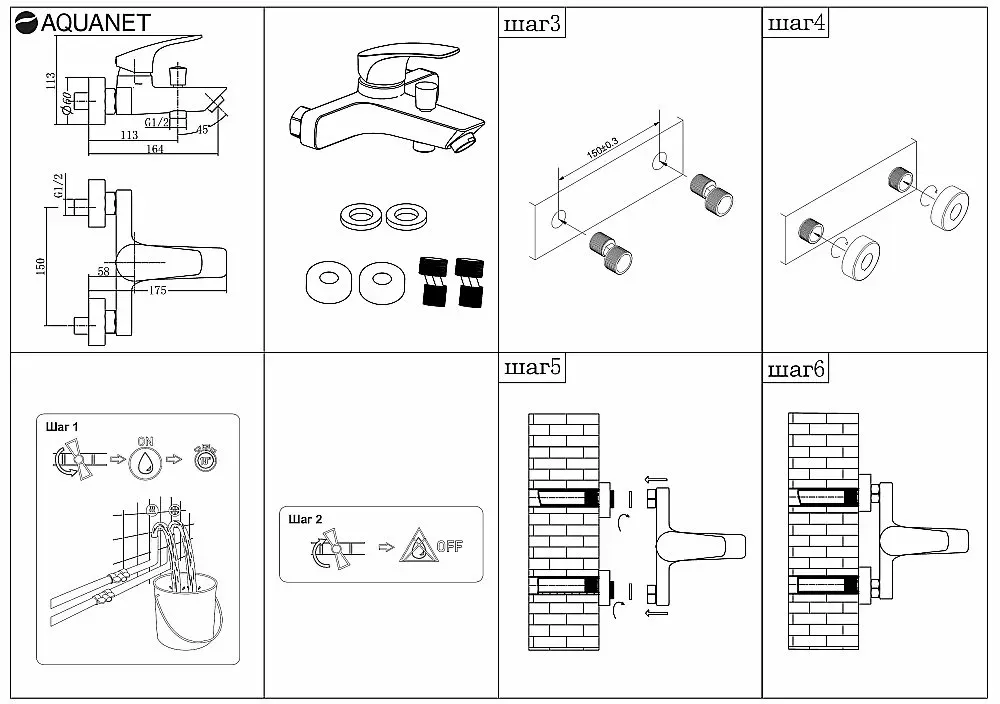 Смеситель для ванны Aquanet Static Black AF330-20B 261822 чёрный матовый купить