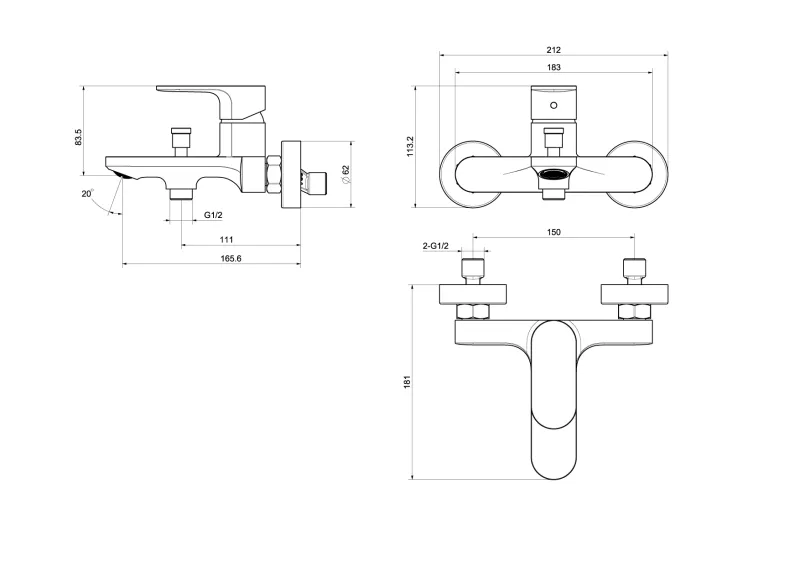 • однорычажная система регулировки силы струи и температуры воды