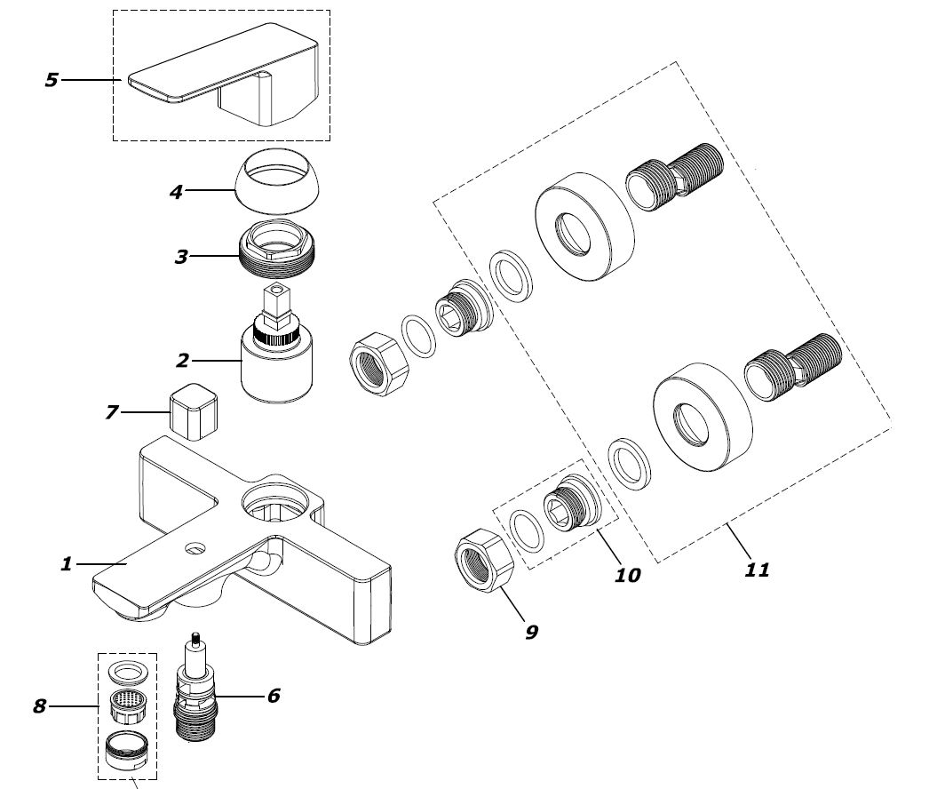Смеситель для ванны AZARIO CADEO AZ-15940501 с коротким изливом