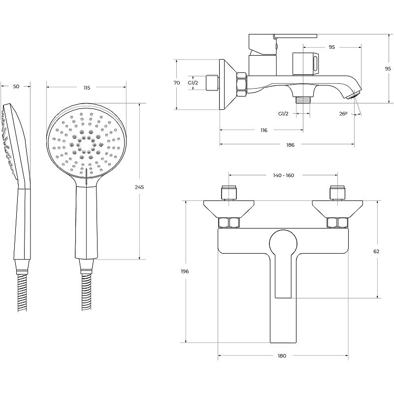 Смеситель для ванны BelBagno Aurora AURORA-VASM-CRM Хром