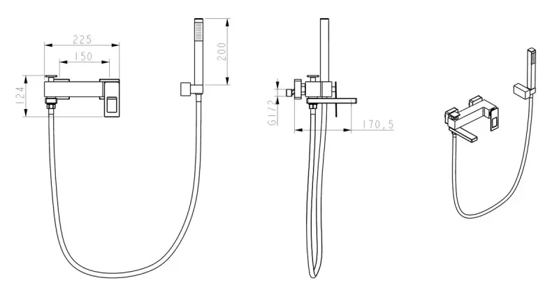 Смеситель Boheme Q для ванны, с душевым гарнитуром, черный, золото, 143-BG.2