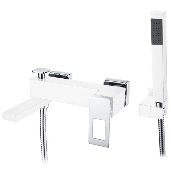 Смеситель Boheme Q для ванны, с душевым гарнитуром, белый, хром, 143-WCR