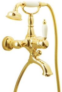 Смеситель Boheme Tradizionale Oro 283 для ванны с душем то, что нужно в современном интерьере. На вашу ванну отлично подойдет смеситель Boheme Tradizionale Oro. Однорычажные модели смесителей – это более современный вариант регулировки воды, легкий в управлении и эстетически стильный в дизайне.Латунь из которой произведен смеситель Boheme Tradizionale Oro 283 отличается высокой прочностью и произведена без использования вредных компонентов. длина излива 17.4 см - это оптимальные параметры у смесителя Boheme 283, предотвращающие разбрызгивание. Конструкция модели Boheme Tradizionale Oro позволяет отлично установить смеситель на стену. Смеситель для ванны Boheme 283 выполнен в стиле ретро, что отлично прослеживается в его форме. Марка Boheme, родиной которой, является Италия, создает смесители качества с высокотехнологичного оборудования, благодаря чему смесители отличаются долговечностью и надежностью. Смеситель Boheme Tradizionale Oro 283 для ванны с душем отличная покупка для вашей ванной комнаты.