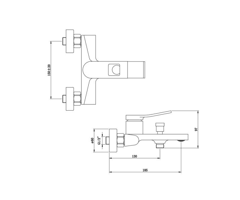 Смеситель для ванны Bronze de Luxe Element EL03CB, хром/черный