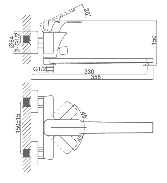 Длина излива, см:33