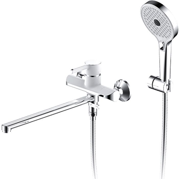 Смеситель для ванны Gappo G2203-8 - однорычажная латунная модель с поворотным длинным изливом. Душевая лейка в комплекте. Цвет - хром / белый.